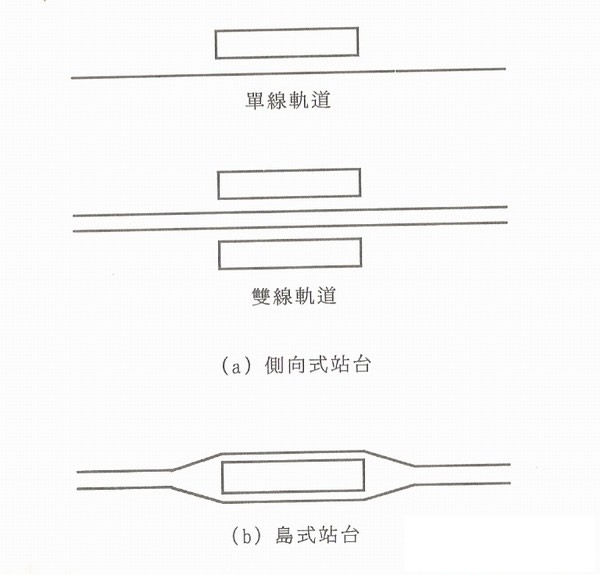 上圖:單線軌道岸式月臺
