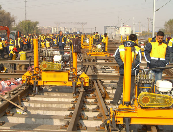 YQBJ-250X110型液壓起撥道機廣泛適用于新建線路、既有線路的起撥道作業,也可組成機群用于提速道岔換鋪作業中道岔的平起平落及落地后與線路對接時撥道作業,是替代壓機作業的理想設備,無論是線路的起撥道作業還是提速道岔換鋪作業中都突顯了安全、高效、省時、省力的特點。